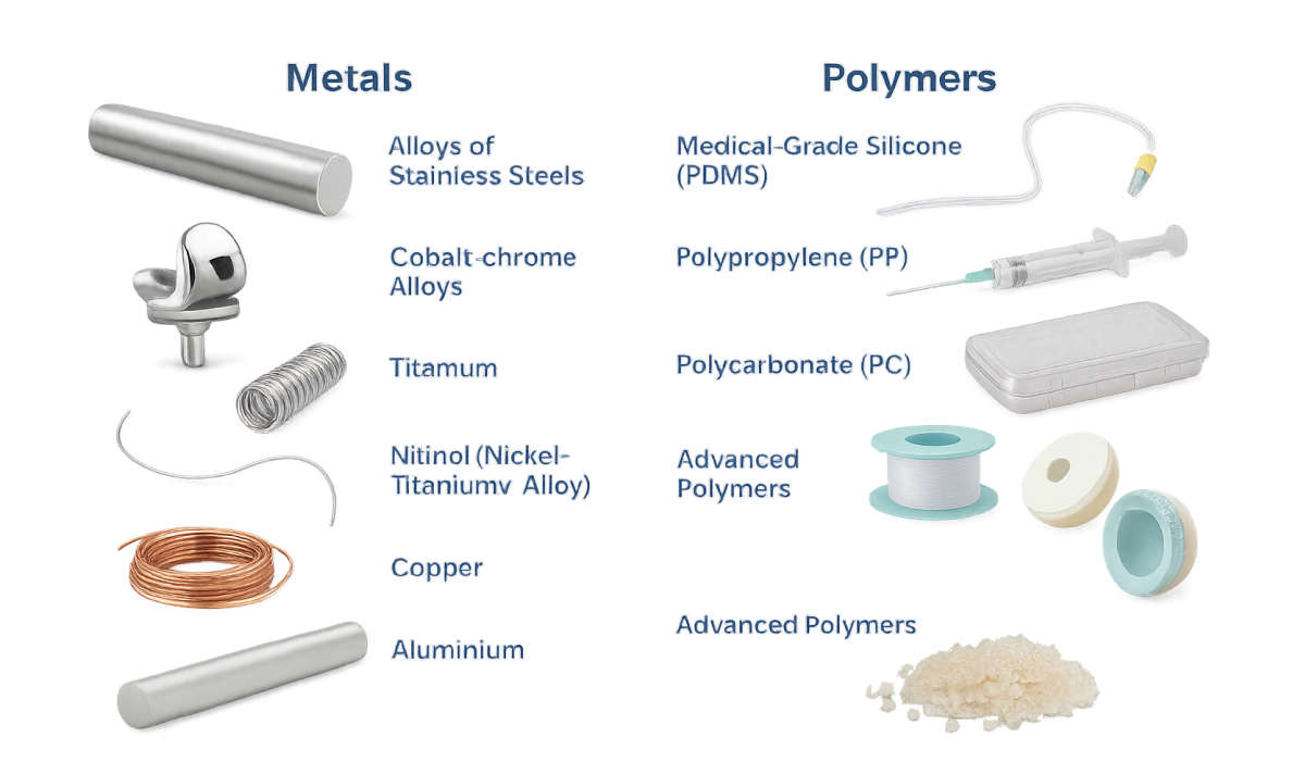 The most commonly used biocompatible materials are metals and polymers. The two categories offer different balances of strength, flexibility, cost, and biocompatibility for various applications.